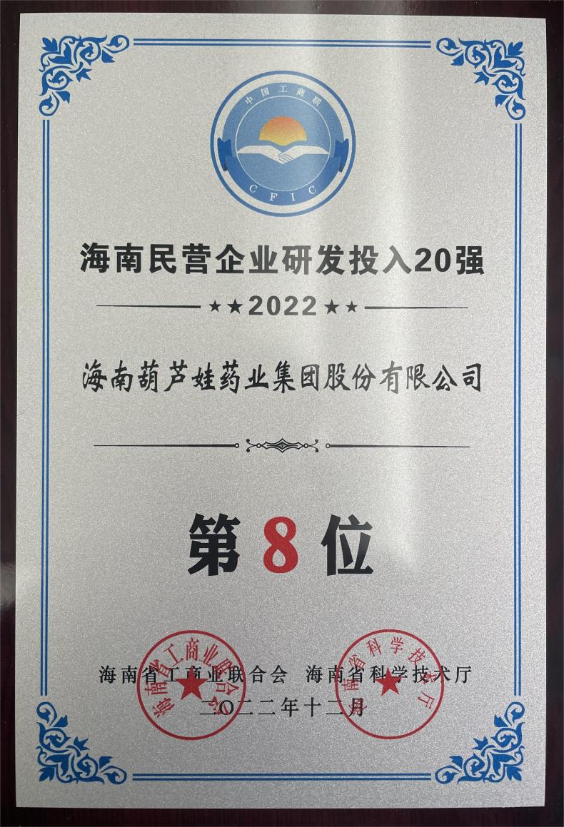 12月23日,2022海南民营企业50强和研发投入20强发布会在海口举行。会上发布了“2022海南民营企业50强”“2022海南民营企业研发投入20强”榜单和分析报告。ag博天堂药业再次荣登两榜,在海南民营企业50强榜单中位列第25位,较去年上升8位,这也是公司连续三年登榜;在海南民营企业研发投入20强中位列第8位,较去年上升7位。